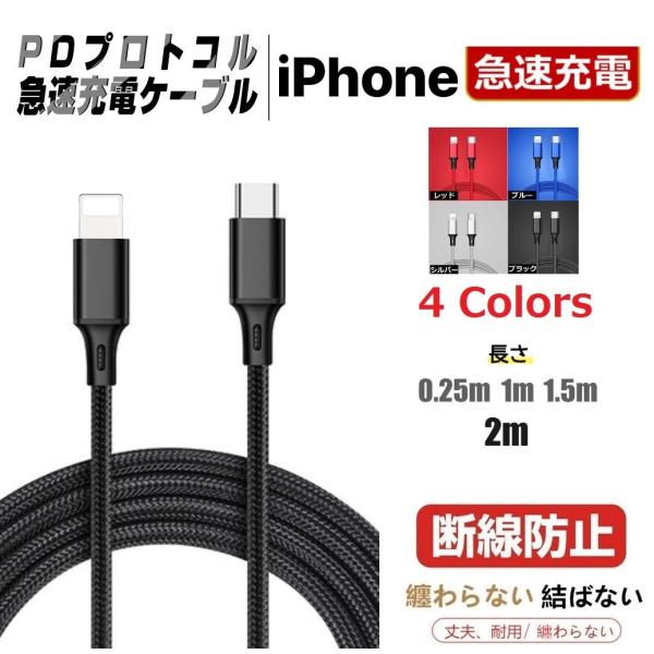 Type C to Lightning iphone 充電ケーブル iphone充電器 Power Delivery対応 PD急速充電 ナイロン編み データ伝送