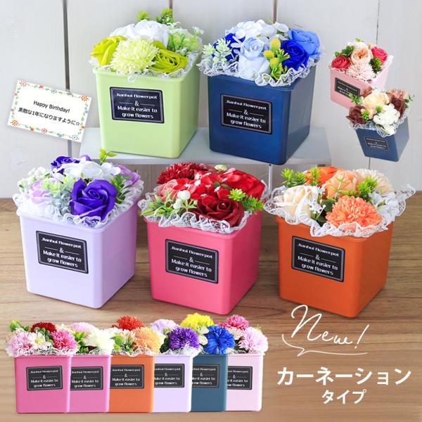 ソープフラワー 誕生日プレゼント 誕生日 プレゼント ギフト 枯れない ポット そのまま飾れる 花 ソープフラワーギフト 花束 記念日 ポット カーネーション