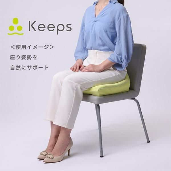 ・いつもの椅子に置くだけで快適な姿勢が続くサポートクッション「Keeps(キープス)」。お尻を優しく支えて、長時間座っても快適な姿勢をサポートします。