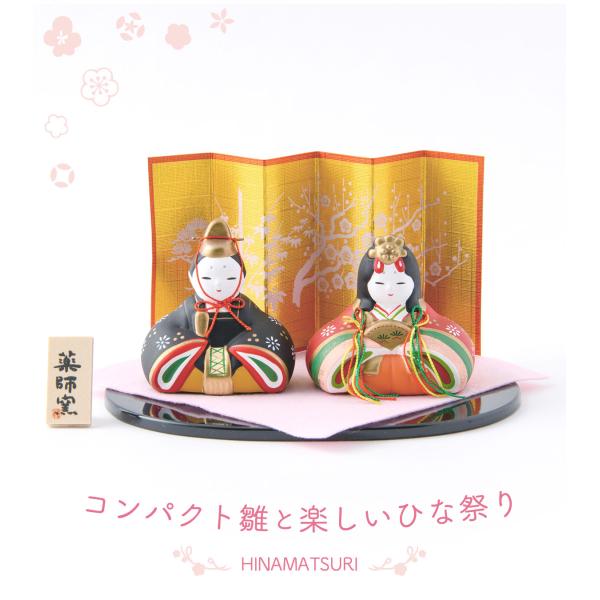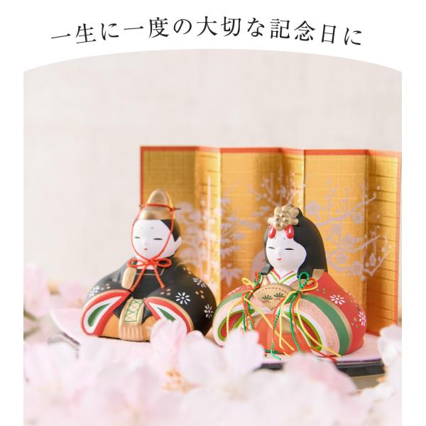 雛人形 雛人形 コンパクト おしゃれ 親王飾り 陶器 ひな人形 【錦彩華みやび雛】 屏風 薬師窯 お雛様 ひなまつり