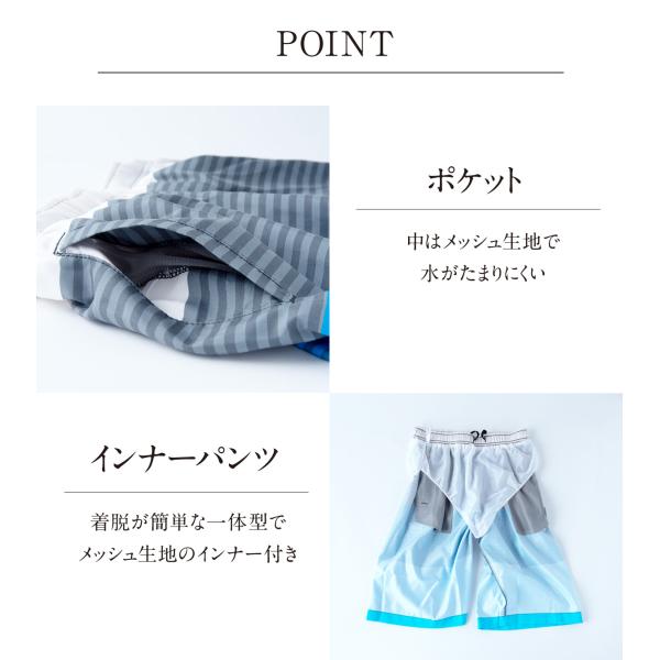 【新商品】サーフパンツ メンズ 水着 サーフ 海パン 水陸両用 海水パンツ インナー付き おしゃれ 男性用 ボーダー ボードショーツ トランクス 夏 膝丈 ひざ丈 ポケット ウエストゴム ひも付き 裏地付 プール 海水浴 旅行 リゾート マリンスポーツ サーフィン サップ メール便送料無料