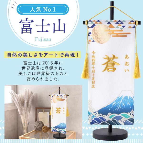 今だけお得 2/16 正午まで名前旗 男の子 五月人形 端午の節句 名入れ 刺繍 命名旗 ちりめん 初節句 御祝 出産祝い デザインプリントギフト 誕生日 富士山 兜