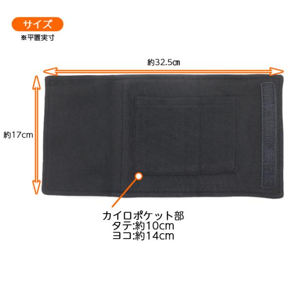 ■本体サイズ:平置き実寸(約)横:32.5cmcm、縦:17cm、カイロポケット部(タテ:10cm、ヨコ14cm)