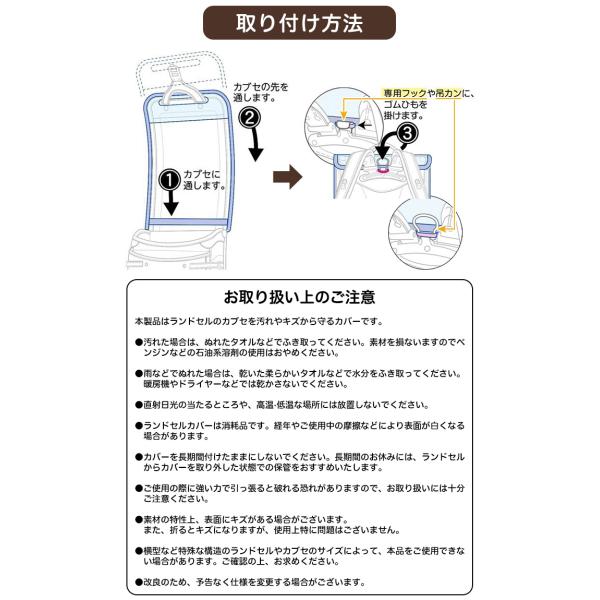 ランドセルを雨や汚れから守るランドセルカバー。