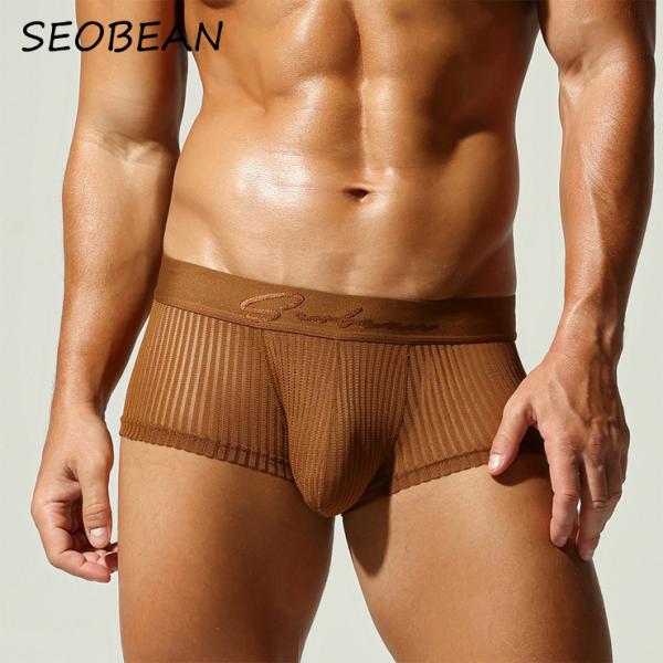 【人気販売】SEOBEAN メンズ ボクサーパンツ 軽量ストレッチ メッシュストライプデザイン 下着 インナー 通気性 快適フィット