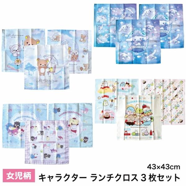 (メール便対応個数・・4セットまで) 女児 キャラクター ランチクロス 3枚セット 3枚組 リラックマ シナモン サンリオ すみっコ ナフキン