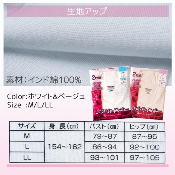 2枚組婦人ノースリーブ肌着 sh 袖なしラン型下着
