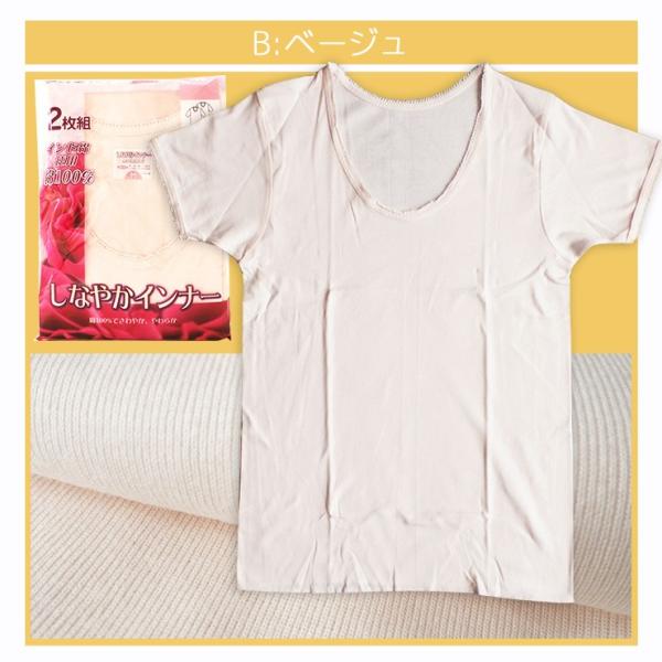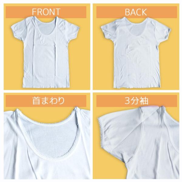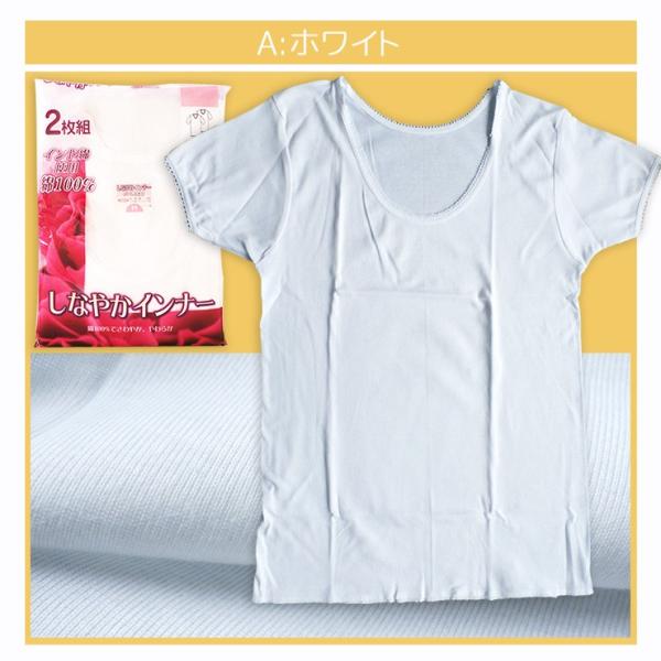 (メール便対応個数・・1セット) 2枚組 婦人 半袖 インナー 綿 シャツ スリーマー 肌着 3分袖 レディース 24-630(710)