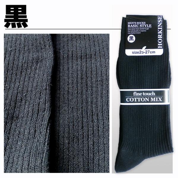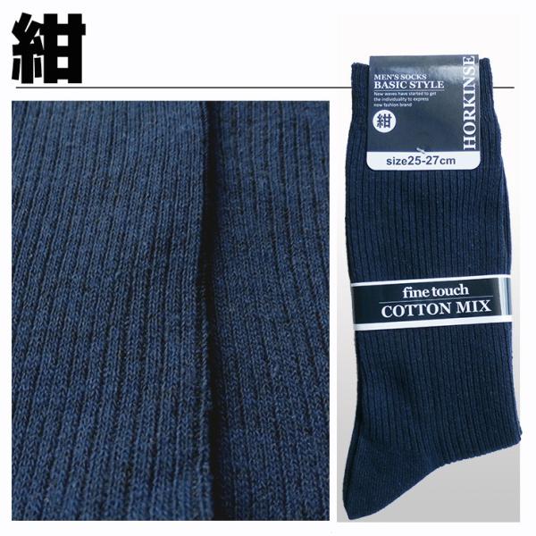 (メール便対応・・4足まで) メンズ カジュアル ソックス 綿混 黒 紺 25-27cm リブ編み/無地/紳士/靴下