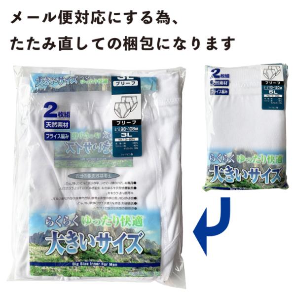 (メール便対応・・2セットまで)大きいサイズ 紳士 ブリーフ 2枚組 3L 4L 5L 白/グレー sh13-824 スタンダード カラー 綿 大寸 無地 メンズ
