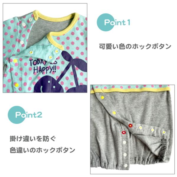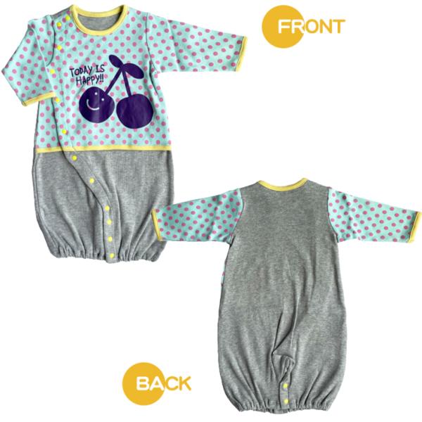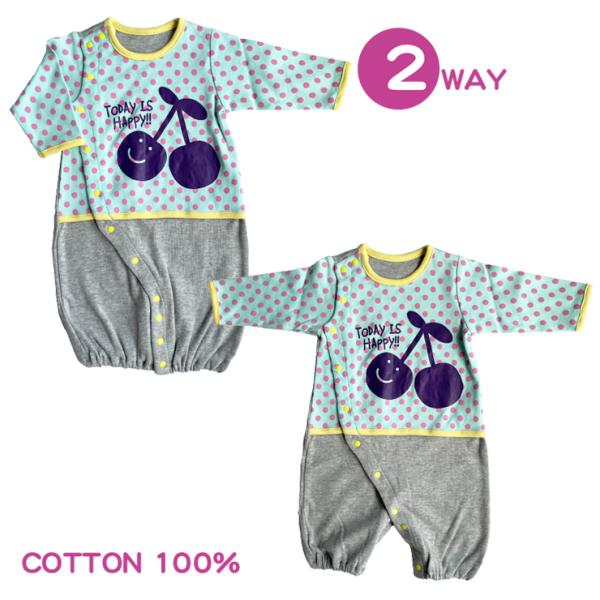50-60cm チェリー・ドット柄 新生児 コンビドレス (☆メール便対応個数・・2点まで) オールシーズン ツーウェイドレス ベビー カバーオール