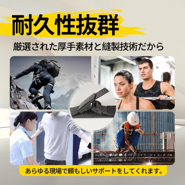 軽量で丈夫なナイロン素材と洗練されたデザインが特徴のこのベルトは、ストレスフリーな装着感を追求しています。作業用としてもおすすめのアイテムであり、カジュアルなコーディネートにもぴったりな一品です。