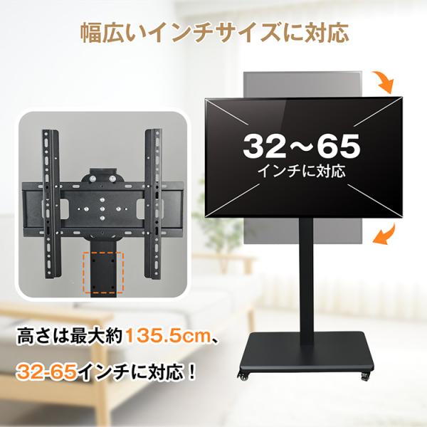 高さのあるテレビ台 スタンド 36型 テレビ用スタンド 高さ3段階調整可能 32-65型対応 ディスプレイスタンド 縦画面対応 縦横両用 ストッパー付き TVスタンド 移動式 移動できる リビング キッチン 狭小 寝室 大型テレビスタンド シンプル 耐荷重 スチール製 ダイニング トレーニング ジム フィットネス 業務用 教室 会議室 敬老の日 父の日 母の日 クリスマス プレゼント ギフト