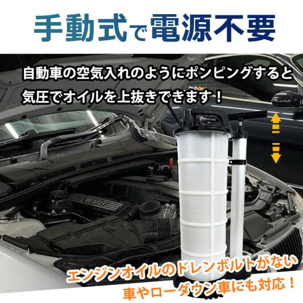 オイルチェンジャー 手動 車 オイル交換 9L エンジンオイル 大容量 ホース6mm 上抜き タンク ポンプ バキューム ブレーキ メンテナンス ジャッキ不要 点検修理