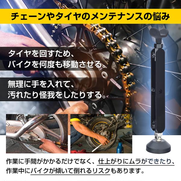 ■ チェーンやタイヤ・ホイールのメンテが楽になる!