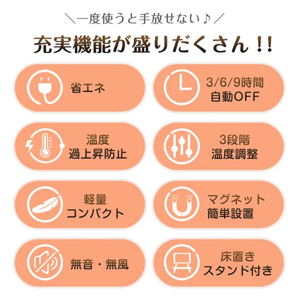 【安全装置】:温度ヒューズ91℃ 3/6/9時間自動OFFタイマー