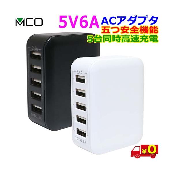 MCO ミヨシ IPA-60U2 USB A 5台同時充電 スマートIC 効率充電 5つ安心保護機能搭載 AC100V〜240V 5V 6A 海外対応 チャージャー【送料無料n】usb a AC-DC charger