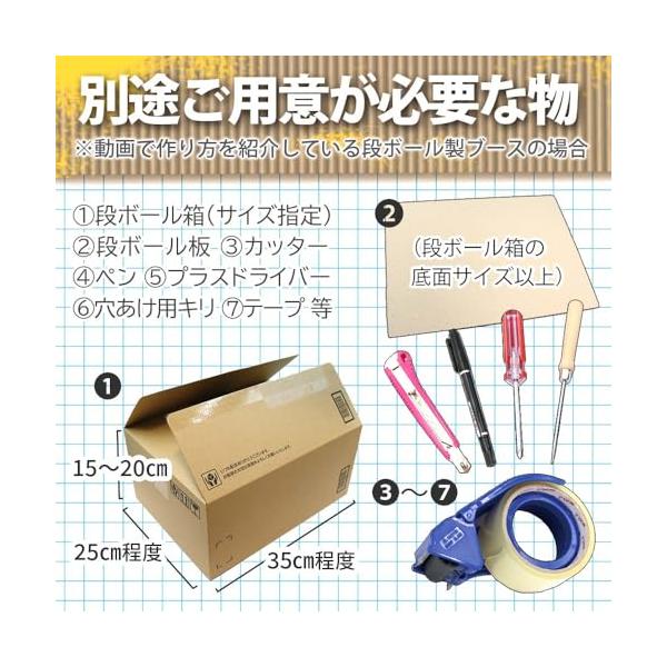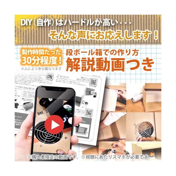・作り方の説明動画つき段ボール箱を使った作り方を解説した動画つき。購入者です。製作時間30分程度。説明書のQRコードをスマホカメラで読み取ってご視聴いただけます。