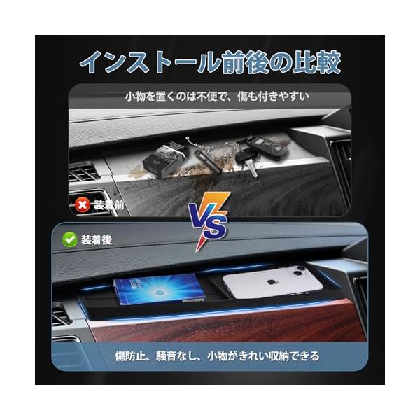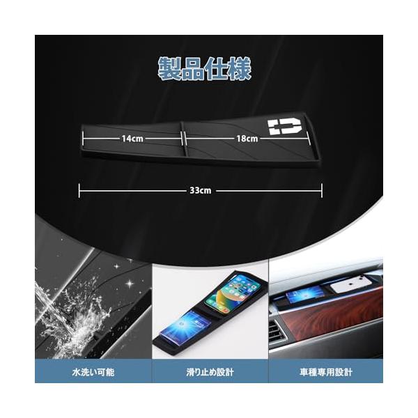 ・2.素材&騒音防止:耐熱性、耐衝撃性、耐磨耗性に優れたシリコンゴムを採用し、車の振動を吸収し、運転中で運転席トレイの小物の滑りによる騒音を減らし、愛車を傷から守ってくれます。