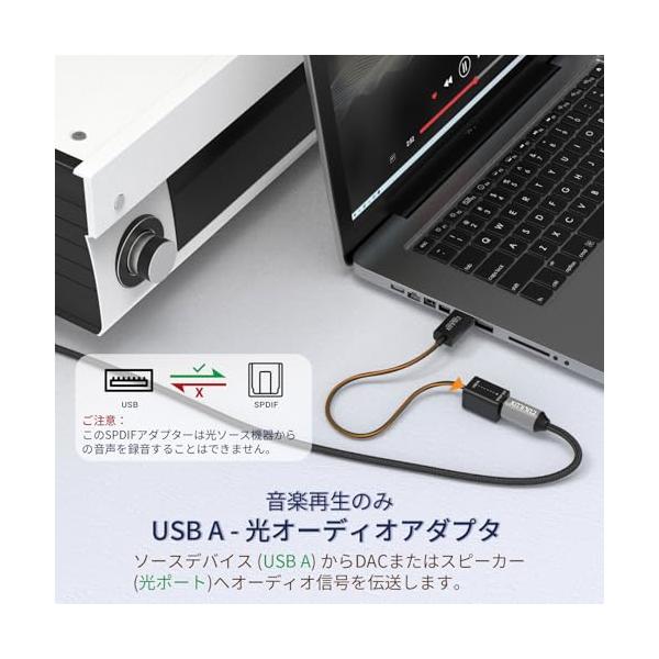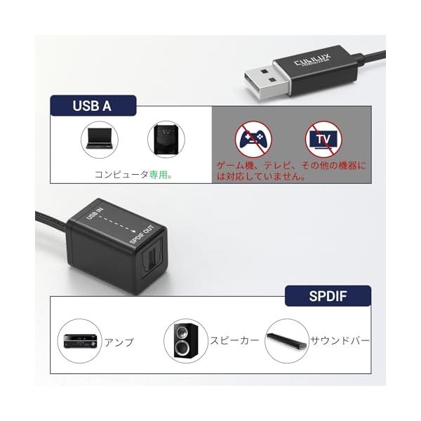Cubilux USB A ? SPDIF 光 オーディオ変換アダプタ、USB - TOSLINK デジタル 変換 ケーブル、USB A トスリ