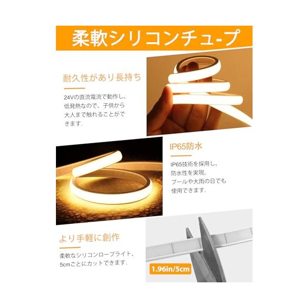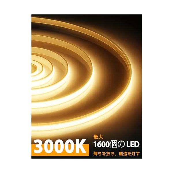 Lamomo COB LEDテープライト 5M 高輝度 チューブライト 3000K 調光可能 電球色 ネオンロープライトリモコン付き IP65防