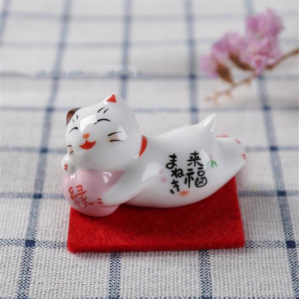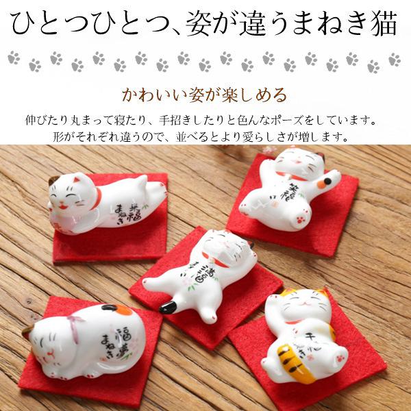 【招き猫 置物 彩絵招き猫箸置きセット】 5個セット しあわせ猫箸台 和風 陶器 箸置き 家庭用 店用和食器 飾り物 猫箸はし置き お箸置き 赤いシート付いてない