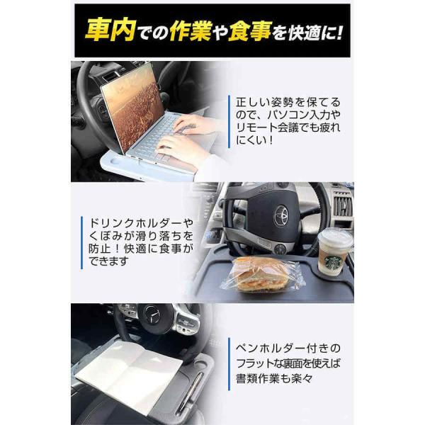 車用 ハンドル テーブル 車載テーブル 車内用 簡易テーブル 車載用 ノートパソコン タブレット 食事台 作業台 パソコンテーブル 両面使えるデスク