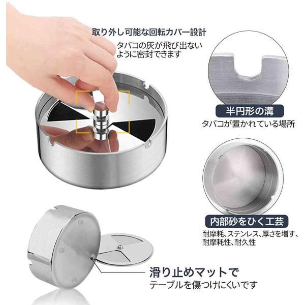 灰皿 ふた付き 大容量 ステンレス素材 卓上 屋外用 回転式蓋 密閉 密閉 卓上 客室 オフィス スタイリッシュ コンパクト 滑りにくい 煙と