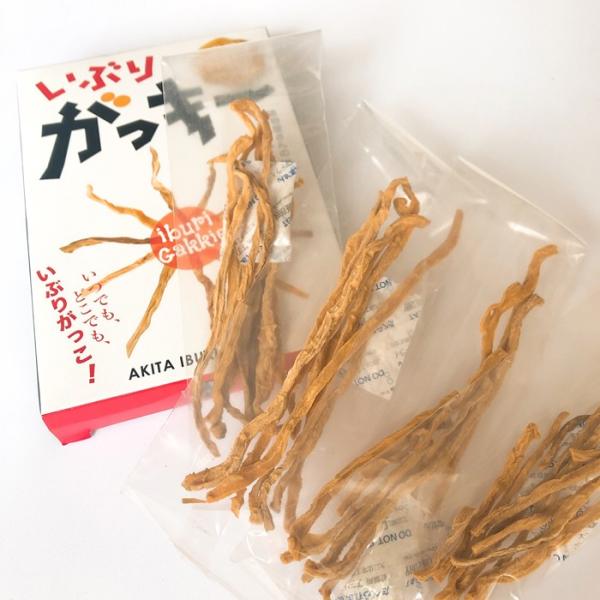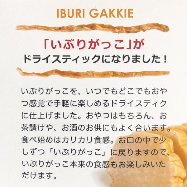 まるで○ッキーのようなスタイルのいぶりがっこ!無添加の秋田名物「いぶりがっこ」をいつでもどこでもおやつ感覚で手軽に楽しめるドライスティックに仕上げました。噛むほどに「いぶりがっこ」の独特な燻製の香りと旨みを楽しむことが出来ます。