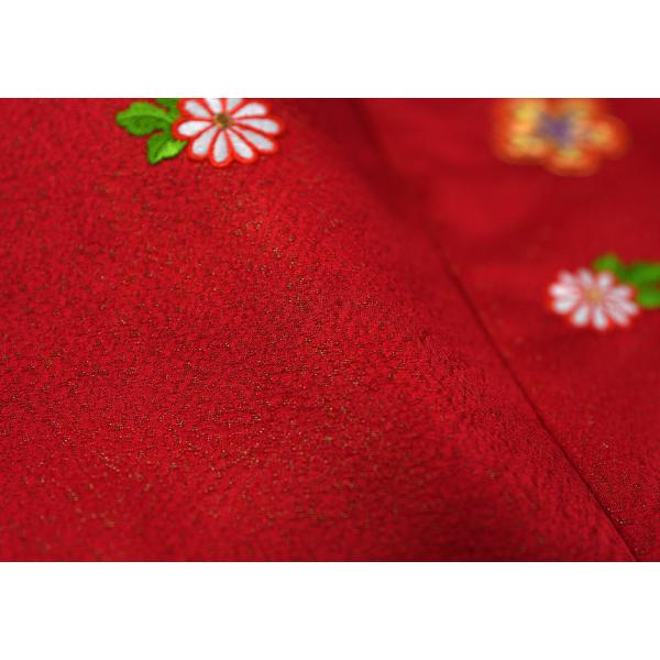 正絹地に金糸が織り込まれた赤色の生地になります。