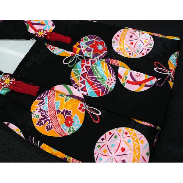 七五三 3歳 正絹 被布コート 女の子 黒地 手まり柄ht341 お宮参り 着物 祝着 初着 産着 お祝い ギフト