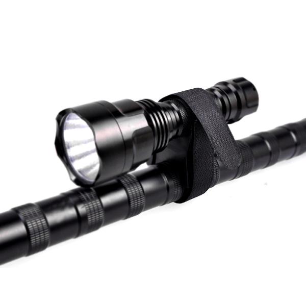 マジックテープで取り付けるため工具不要で脱着が可能なライトホルダー