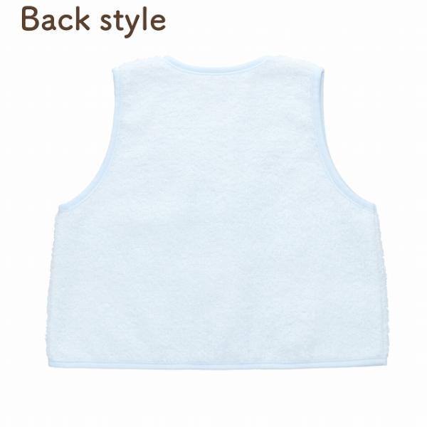 撚りを甘くした糸を使い織り上げてつくられる無撚糸タオルのベストです。 夏のクーラー対策や肌寒い時にさっと羽織れるベストは、お外でも室内でも、赤ちゃんの体温調節にとても便利なアイテムです。オールシーズンお使い頂けます。