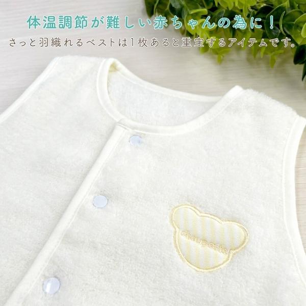 ベビー ベスト 日本製 ベビー服 ベア 綿100% 男の子 女の子 無撚糸タオル 羽織り 体温調節 出産祝い 70〜80 赤ちゃん キッズ 出産準備