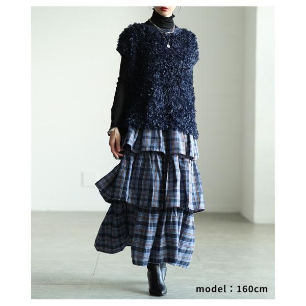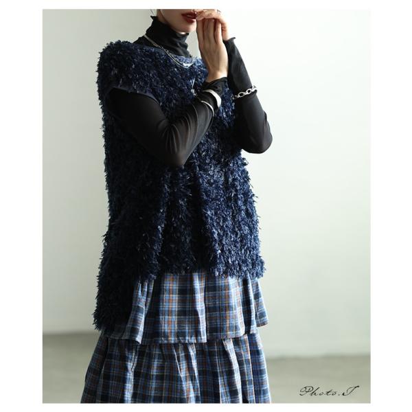 レディース トップス ベスト シャギー ニット 重ね着 シンプル