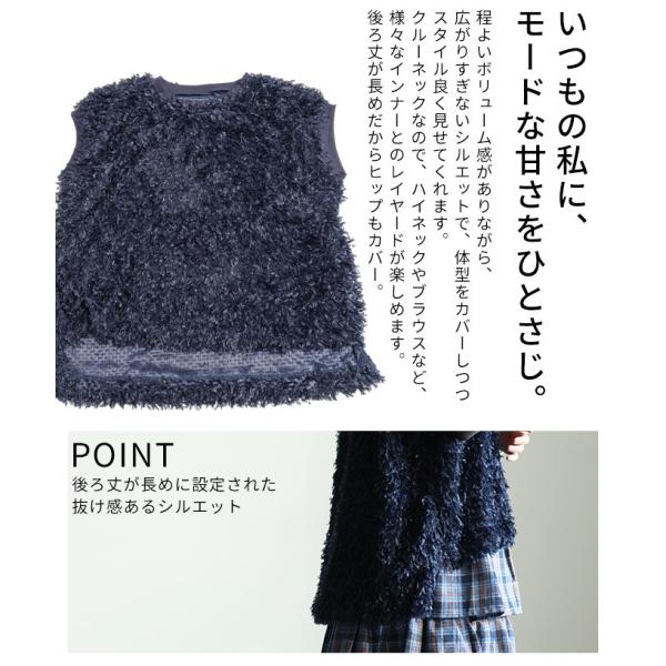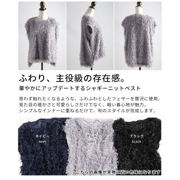 レディース トップス ベスト フェザー シャギー ニット レイヤード 無地 グレー ブラック ネイビー 大人可愛い 大人 可愛い 30代 40代 50代 60代 サワアラモード
