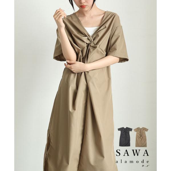 爆買 イベントセール レディース ワンピース 黒 ブラック モカ 半袖 ロング丈 ミモレ丈 膝下丈 ギャザー スリット 無地 大人可愛い 大人 可愛い 30代 40代