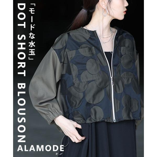 レディース アウター 水玉 ドット柄 長袖 ショート丈 羽織り ジップアップ カジュアル 春 秋 春服 秋服 大人可愛い 大人 可愛い 30代 40代 50代 60代 アラモード