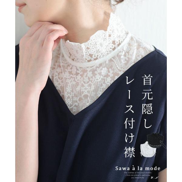 レディース 小物 付け襟 白 ホワイト 上品 刺繍 レース 花柄 ハイネック 綿 コットン つけえり 夏 大人可愛い 大人 可愛い 30代 40代 50代 60代 サワアラモード