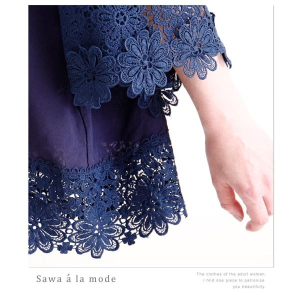 レディース ワンピース 紺 ネイビー 羽織り ロング丈 花柄 ストライプ ボーダー 半袖 5分袖 足首丈 大人可愛い 大人 可愛い 30代 40代 50代 60代 サワアラモード