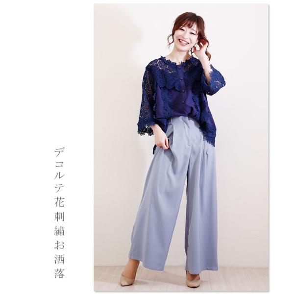 花刺繍レースが可愛らしいふんわりブラウス