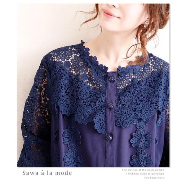 トップス シャツ カットソー ブラウス 刺繍 花 透け感 綿 コットン ベージュ 春 夏 秋 レディース レディス サワアラモード 洋服 30代 40代 50代 60代