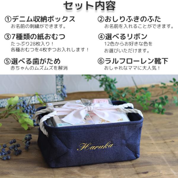 出産祝い デニム ずっと使えるおむつケーキ ボックス ラルフローレン 靴下 バスケット 名入れ 刺繍 ストッカー ケース B80