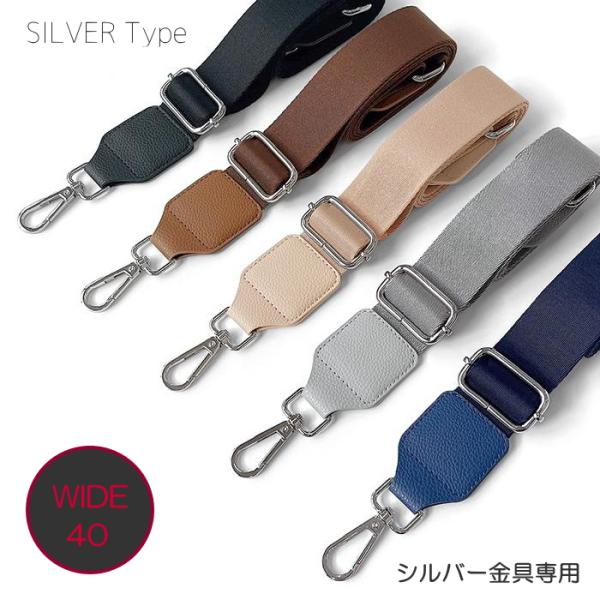 ウィービング ショルダーストラップ ベルト 幅40ミリ 長さ調整可能 シルバー金具 上品なカラー 幅広 斜め掛け クロスバック お洒落 織生地 単品
