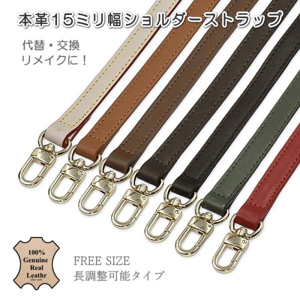 本革 ショルダーストラップ ベルト 幅15ミリ 長さ調整可能 牛革 天然皮革 ステッチ レザー 斜め掛け クロスバック 単品