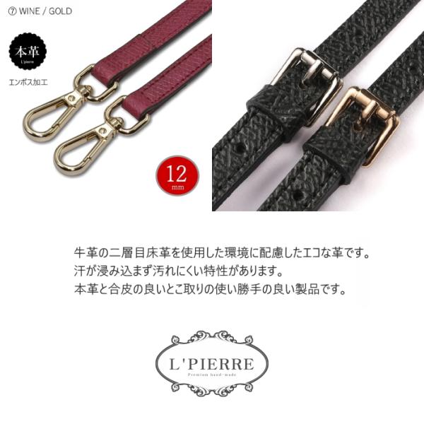 ショルダーストラップ ベルト 幅12mm 本革 長さ調整可能 牛革 床革 バッグ ポシェット ステッチ レザー 斜め掛け クロスバック 単品