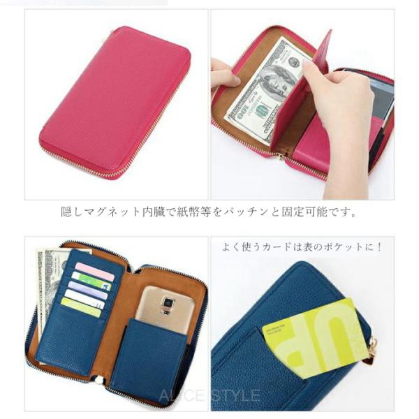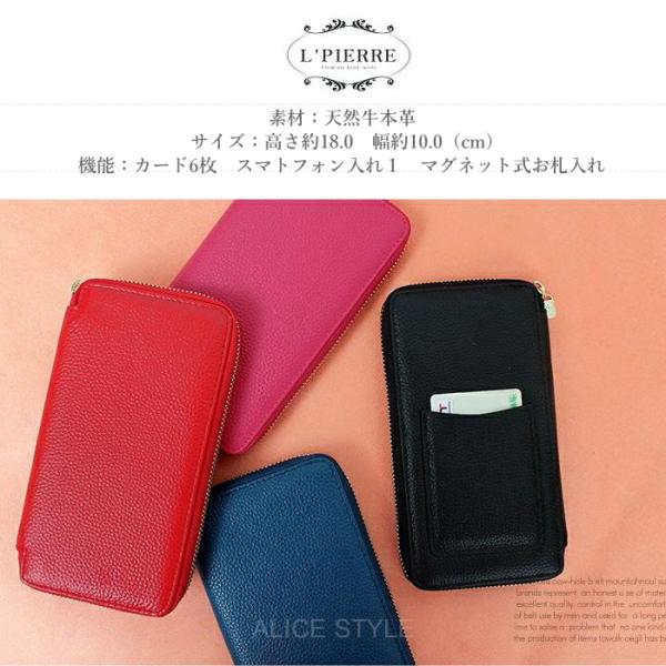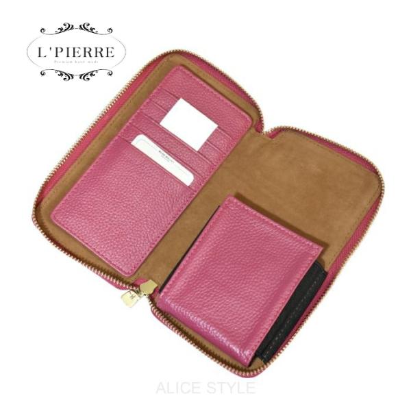 スマホカード財布 エルピエール 天然牛革 ラウンドファスナー携帯電話財布 レディース スマホ財布 かわいい