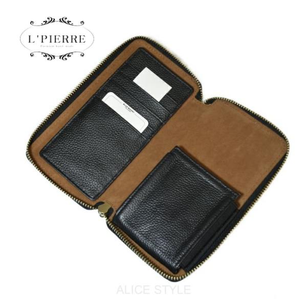 スマホカード財布 エルピエール 天然牛革 ラウンドファスナー携帯電話財布