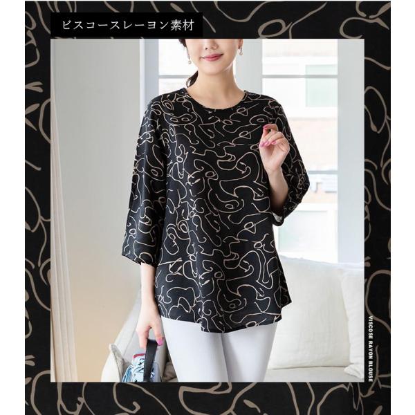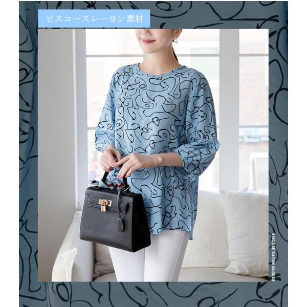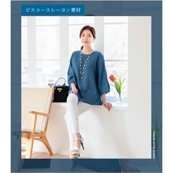 ブラウス レディース 40代 50代 60代 ファッション 大きめ ゆったり 女性 上品 ビスコース シャーリング 人工シルク 七分袖 春秋物 高品質 ミセス