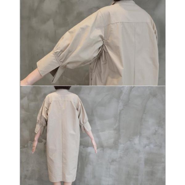 オープンシャツ ワンピース ベルト付き バルーン袖 レディース 40代 50代 60代 おしゃれ 女性 上品 ベージュ 紺 青 カーキ 緑 七分袖